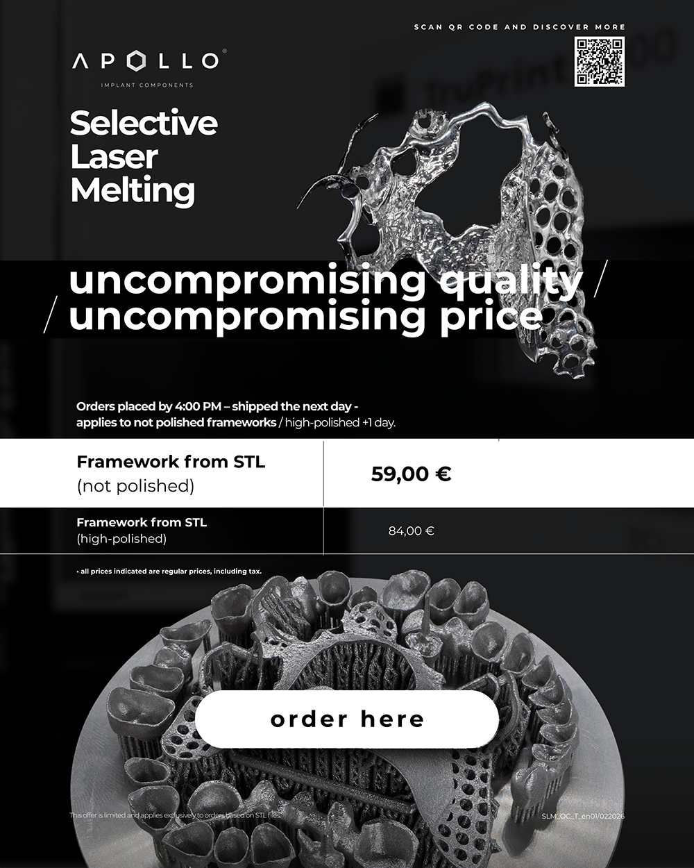 Knowledge and experience, supported by practice and a modern machine park adapted to standard production, gave us the opportunity to develop APOLLO Smart Components - one of the most unique solutions available on the implant prosthetic market.