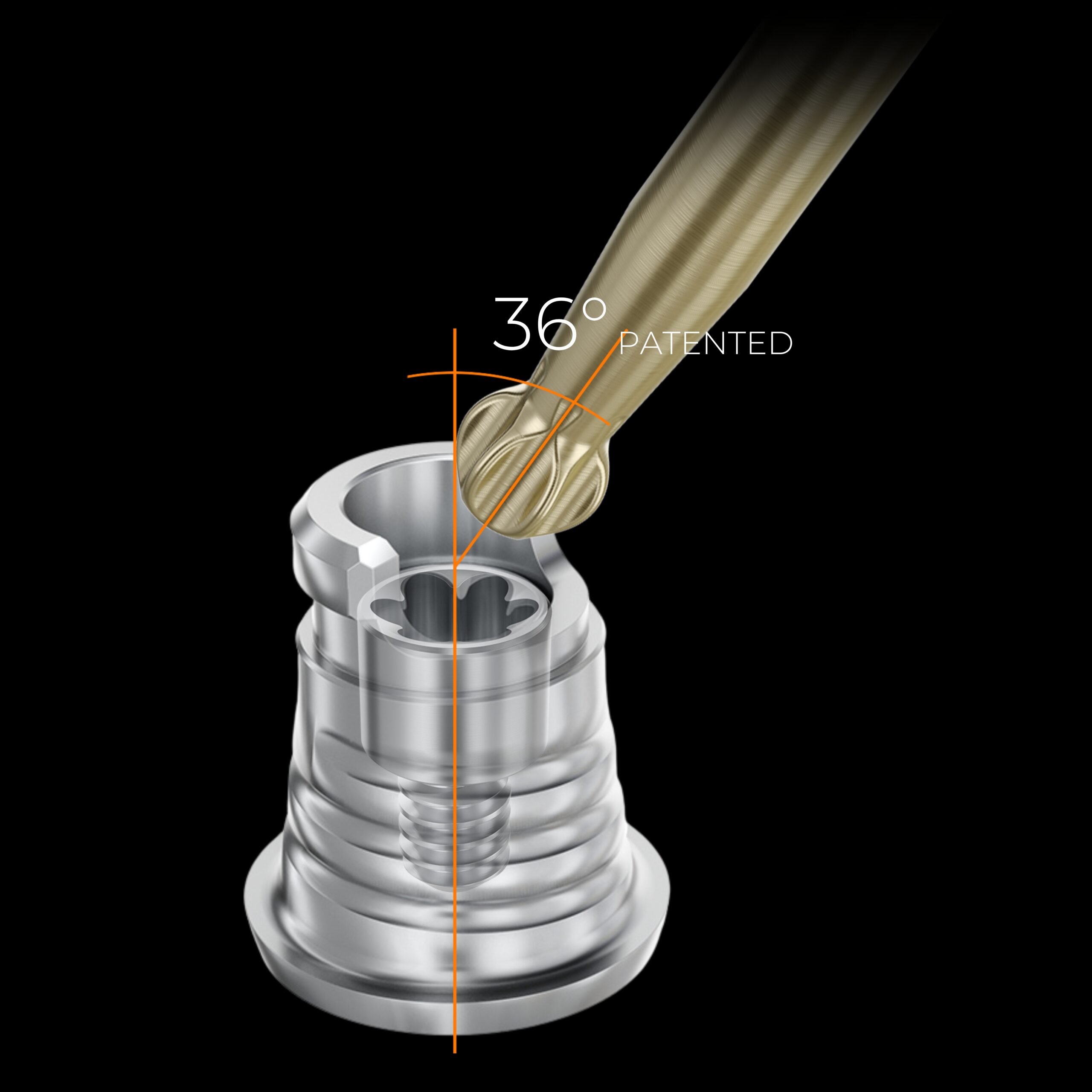 Component with the possibility of the screw channel angulation up to 36 degrees.